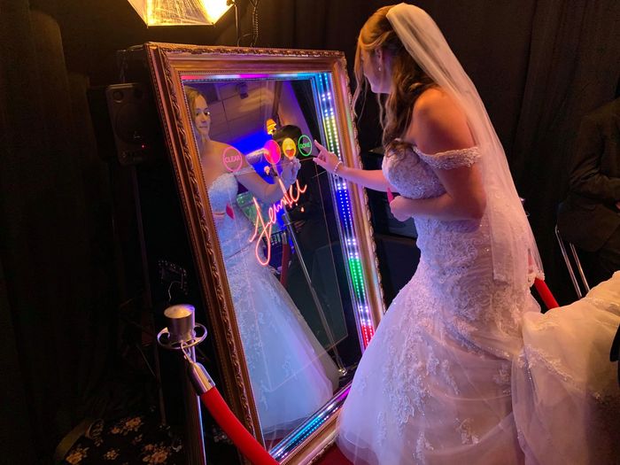 The Angell Mirror Photo Booth is a unique photo generating product offering the newest technology in interactive picture taking. The full length mirror offers a sleek design and a user friendly interface, communicating with guests with a touch screen of colorful animations and entertaining voice guidance.